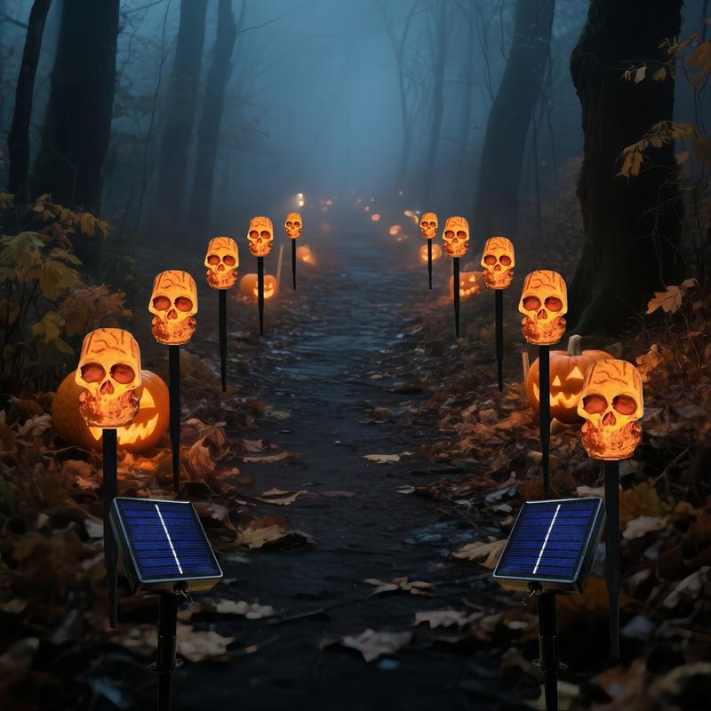 🛒 ¡Haz que tu Halloween destaque este año! Dale a tus invitados una bienvenida terrorífica con estas luces solares de calaveras.