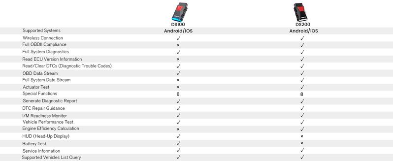 Mucho más que un simple lector OBD. El DS200 cubre los sistemas esenciales del vehículo: motor, transmisión, airbag, ABS, ESP, TPMS e inmovilizador.