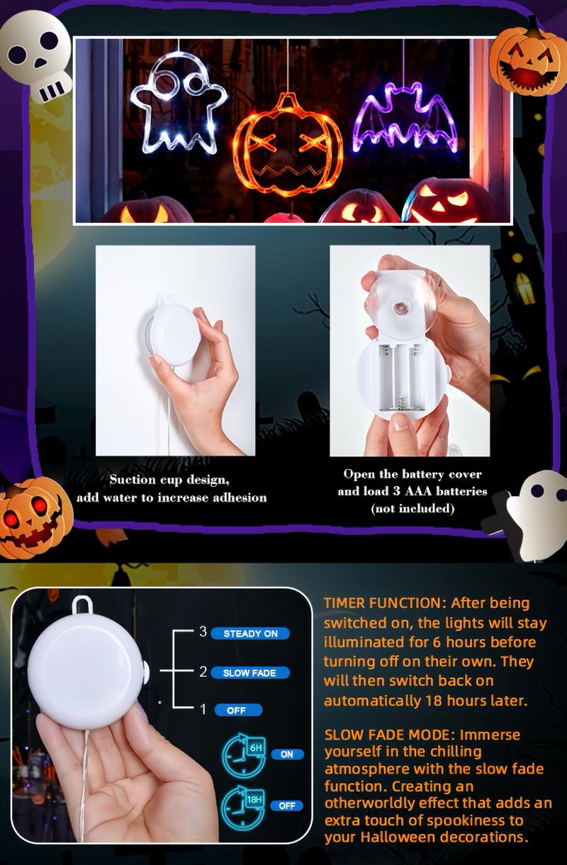 🎃 Set de 3 Luces LED Colgantes para Ventanas – Decoración Sutil y Festiva de Halloween 🎃